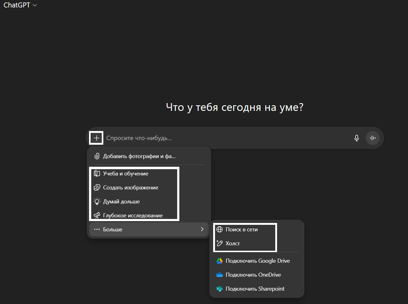 Снова кликните на +. Это позволит определить тип задачи, которую нейросеть должна выполнить. ChatGPT может:
