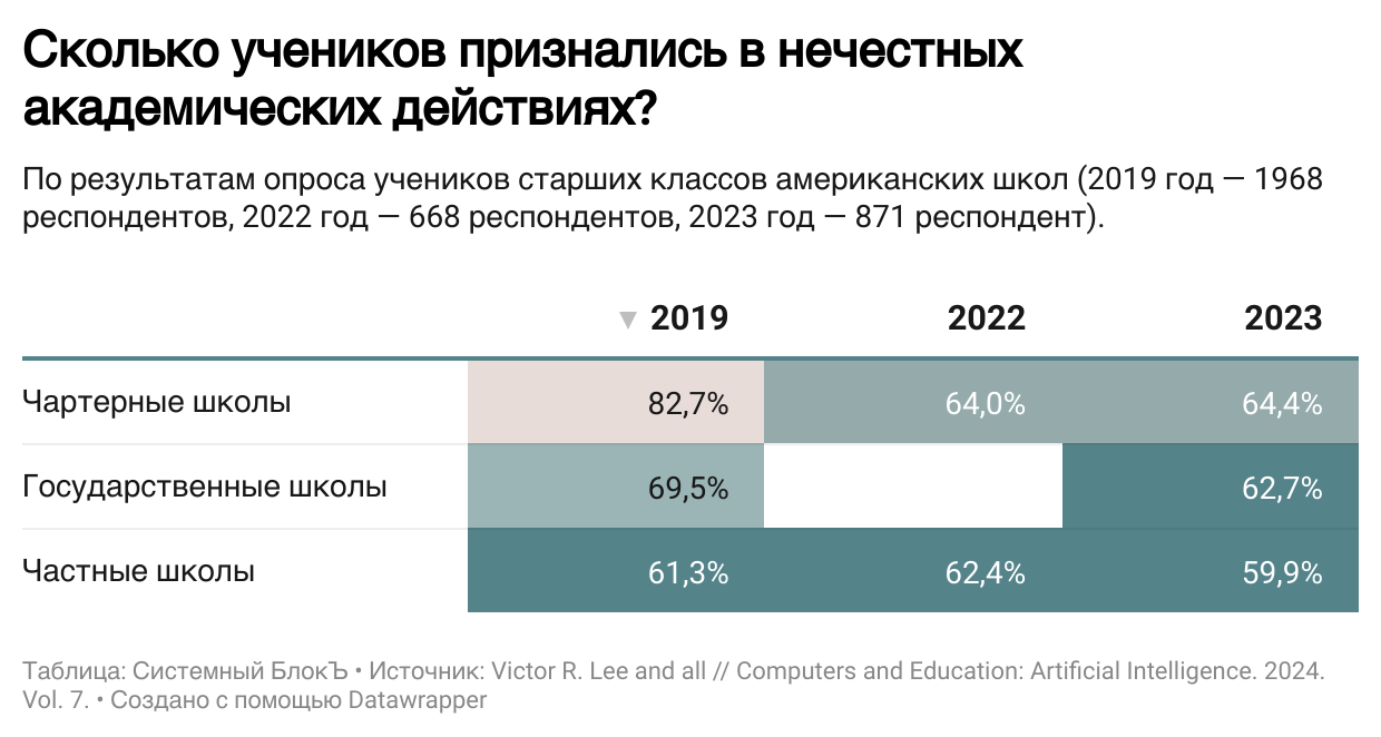 Результаты показали: несмотря на доступность ИИ-инструментов, уровень списывания не вырос, а даже немного снизился.