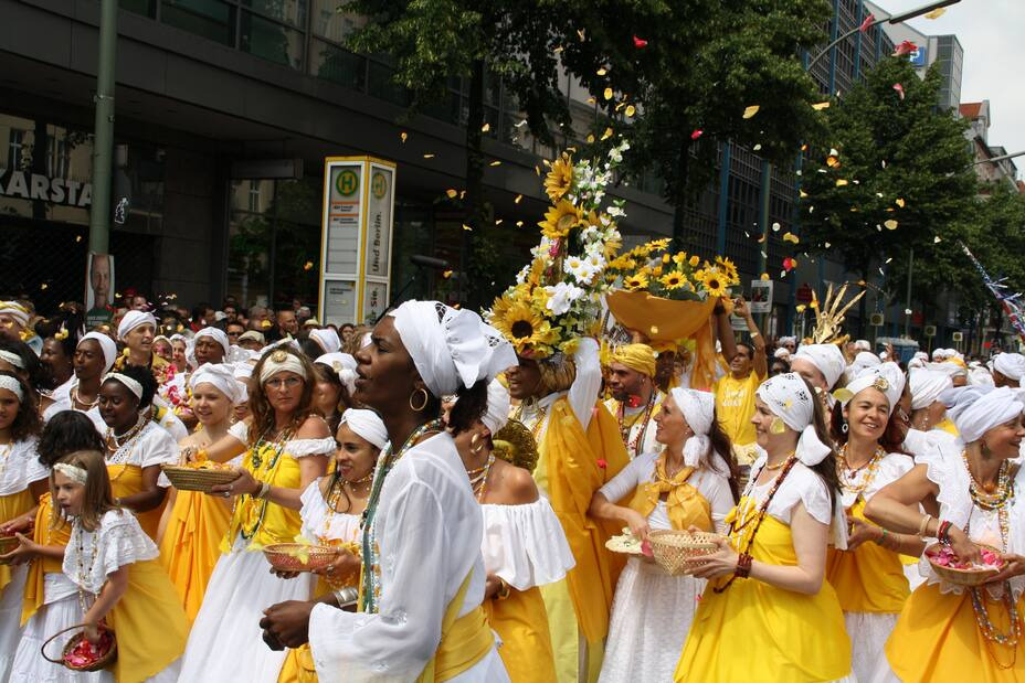 Даниела Клетте, вторая справа — участница фестиваля культур в Берлине в 2009 году, улыбается и разбрасывает лепестки. Эти фотографии из «мирной» жизни и сервис Pimeyes выдали ее местонахождение. Источник